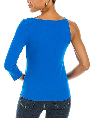 - One-Shoulder Rib Knit Top in Santorini blue with ribbed design, one-shoulder style and V-neck