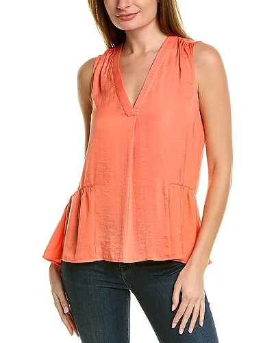 - Rumpled Top in bright coral with V-neck, shirred shoulders, and shirred waist