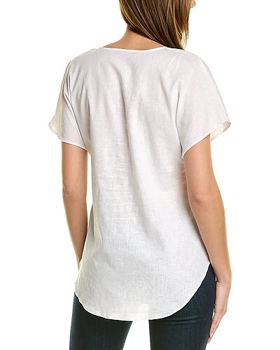 - Tie Front Linen-Blend Top in ultra white with V-neck, dolman sleeves, and self-tie high-low hem