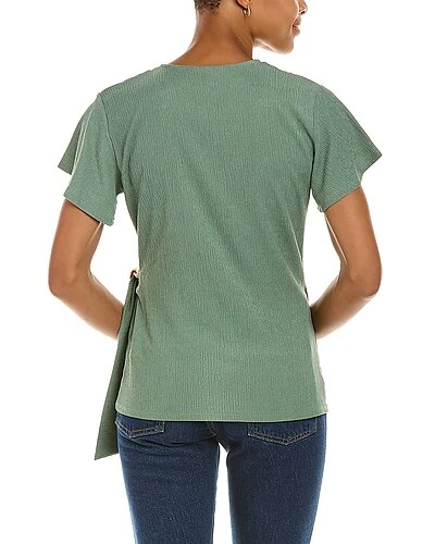 - Wrap Top in lush eden with textured design and wrap front with buckle detail at waist