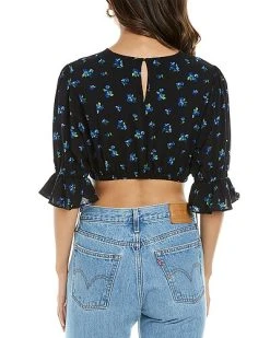 - Cropped Top in ivory with elasticized flare cuffs and elasticized cropped hem