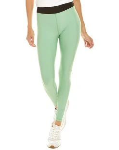 - Solid High-Rise Legging in fair green and black with stretch performance fabric