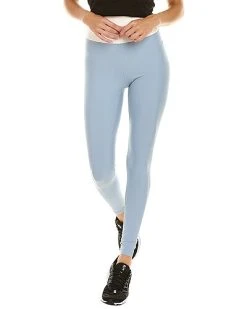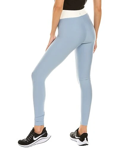 - Solid High-Rise Legging in dusty blue and off white with stretch performance fabric