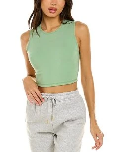 - Solid Muscle Tank in fair green with stretch fabric and cropped hem