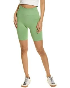 - Solid Seamless Biker in fair green with compressive stretch fit fabric with ribbed panels